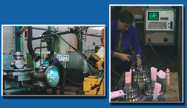 joint welding and deposit welding had been granted diverse procedure approvals for TIG, MIG/MAG, SAW and almost all conventional methods of manual welding. Our company is a welding contractor certified to DIN EN 729-2 and meets the welding requirements defined in ASME-Code Sec. IX. Our manpower includes certified welders. ZfP examiners certified to EN 473 supervise welding quality. • Ultrasonic testing • Magnetic crack testing • Liquid penetration testing • Hardness testing • Spectroscopic testing |
